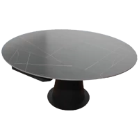 Las sinuosas columnas de oro viejo levantan un sensual velo pétreo con mesuradas texturas en gris. En conjunto, enaltecen el placer culinario y el buen gusto.
