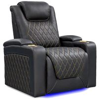 Elegante, delgado y cómodo, el Syracuse ofrece amplio espacio para tu cine en casa sin sacrificar confort. Incluye portavasos con luz LED, iluminación ambiental en la base, piel de grano superior 9000 y reclinación motorizada