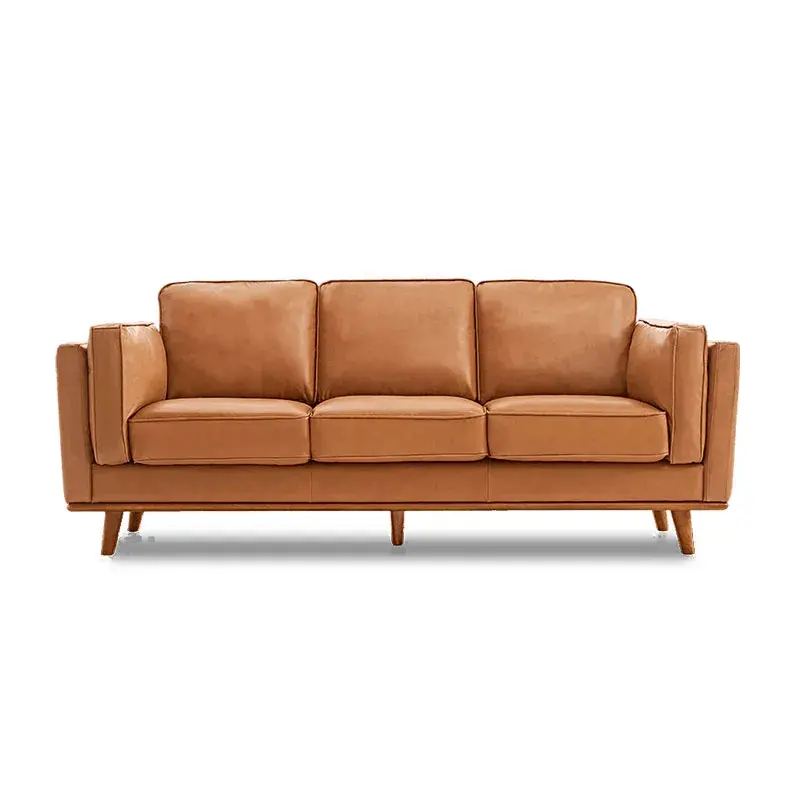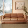 La belleza y durabilidad del sofá Artisan Nappa se complementan con elegantes patas y estructura de madera de aliso, que aportan un toque sofisticado de estilo mid-century a cada diseño.