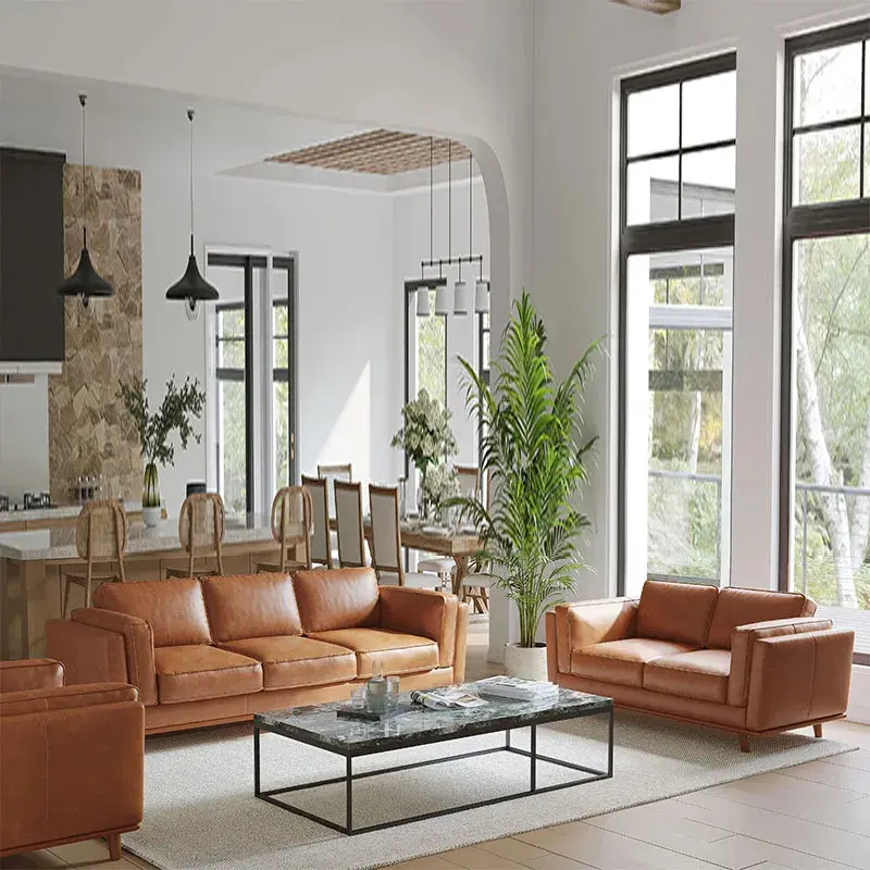 Disfrute de la comodidad y practicidad de los cojines con respaldo de tela y fundas removibles, que facilitan mantener su sofá de cuero italiano limpio y acogedor, garantizando siempre su mejor apariencia y confort.