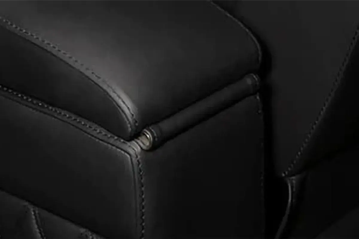 Con un interior forrado en terciopelo parisino, el almacenamiento oculto en el reposabrazos combina elegancia y funcionalidad, permitiéndote guardar tus dispositivos de forma discreta y ordenada.