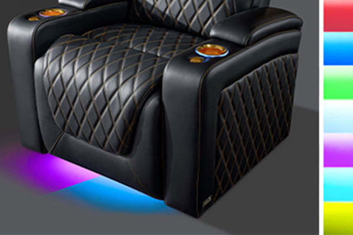 Personalice el ambiente con 7 opciones de color LED para la base y los portavasos cromados en negro, añadiendo un brillo elegante a su espacio.