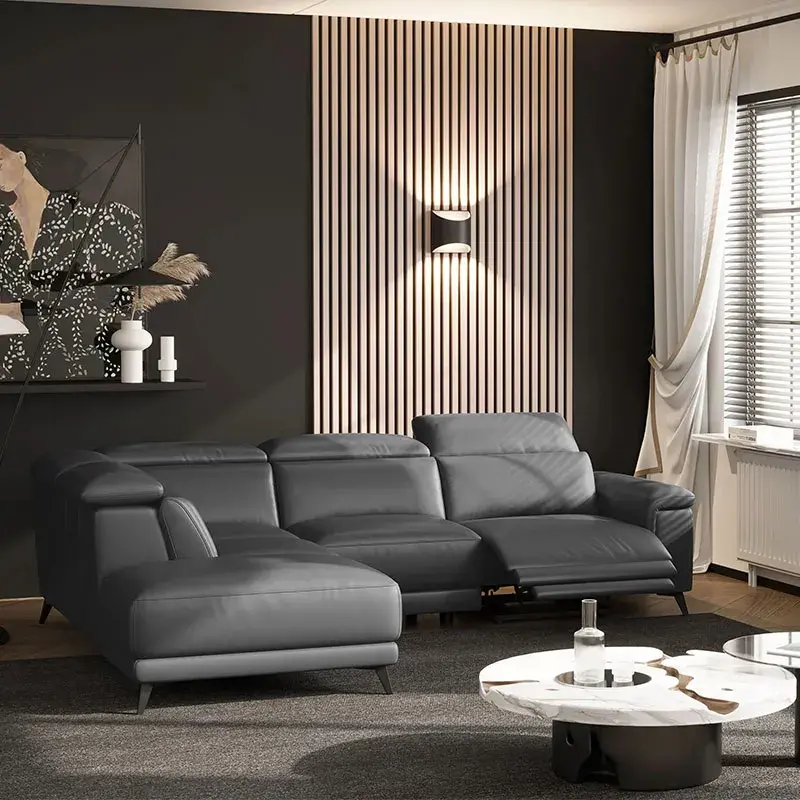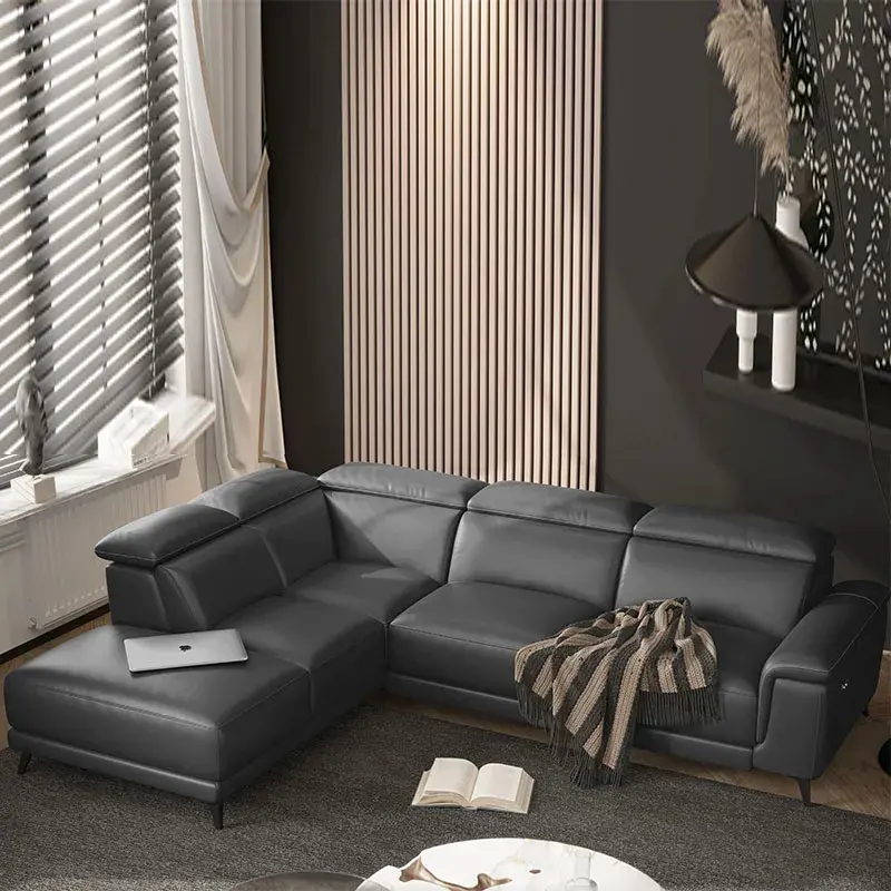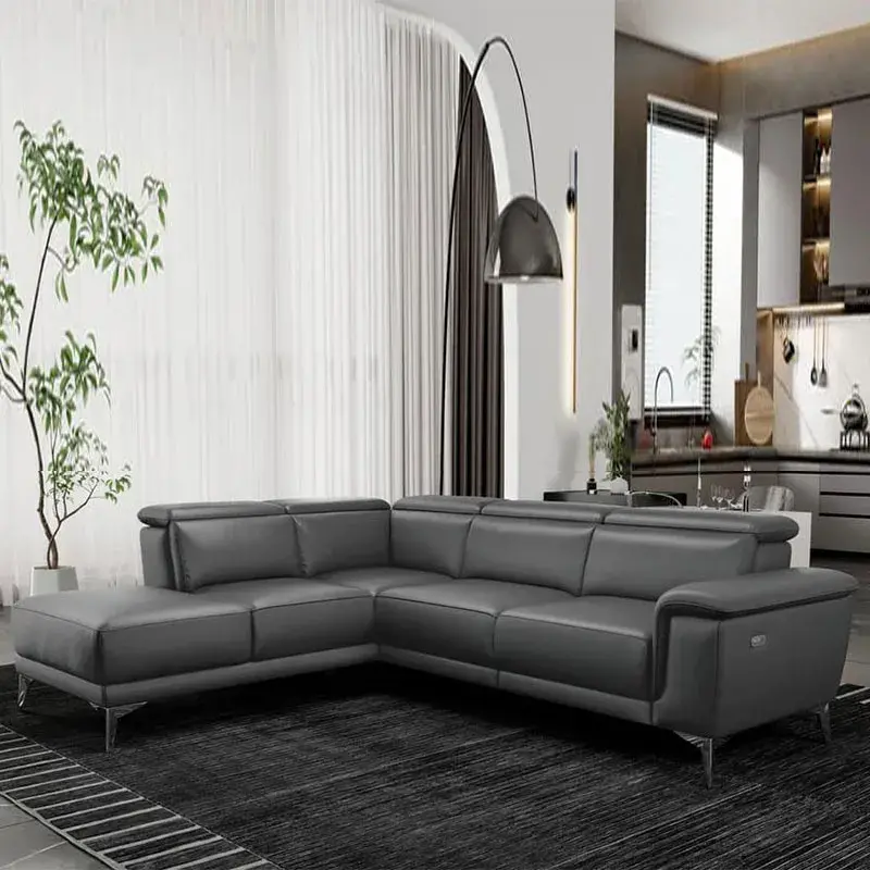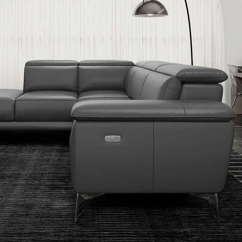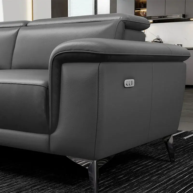 El sofá seccional Pista encarna la fusión ideal entre comodidad y lujo, con una impresionante construcción de cuero de primera calidad que captura la esencia del hogar. Su exquisita artesanía define el verdadero significado de la comodidad y la elegancia. Equipado con reposacabezas ajustables, función de reclinación eléctrica y una práctica función de carga USB, el Pista introduce sin esfuerzo un toque contemporáneo en la decoración de tu hogar, mejorando su estilo y funcionalidad en general.