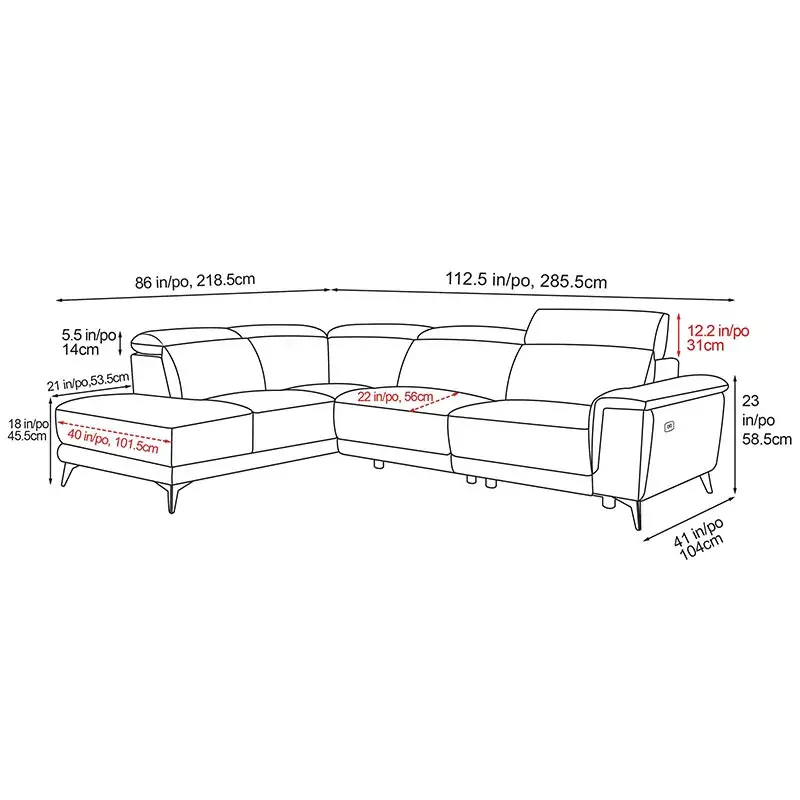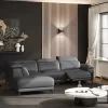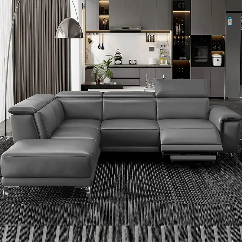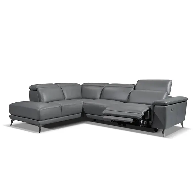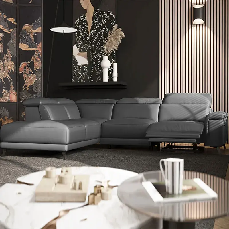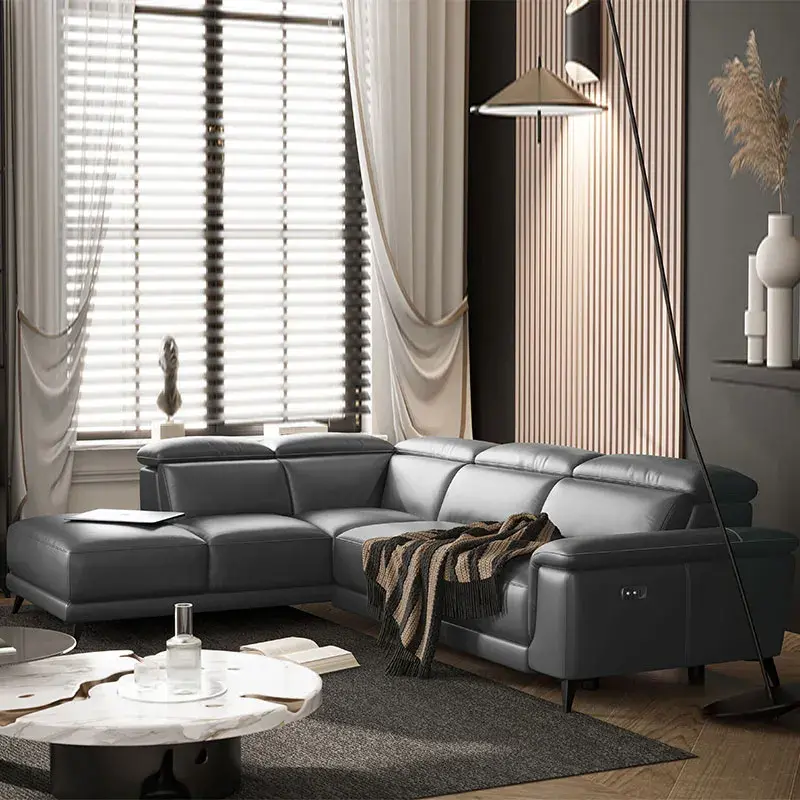El sofá seccional Pista encarna la fusión ideal entre comodidad y lujo, con una impresionante construcción de cuero de primera calidad que captura la esencia del hogar. Su exquisita artesanía define el verdadero significado de la comodidad y la elegancia. Equipado con reposacabezas ajustables, función de reclinación eléctrica y una práctica función de carga USB, el Pista introduce sin esfuerzo un toque contemporáneo en la decoración de tu hogar, mejorando su estilo y funcionalidad en general.