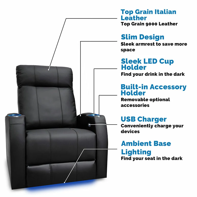 Los portavasos LED facilitan encontrar tu bebida en la oscuridad y se controlan fácilmente con un botón para una experiencia cinematográfica envolvente.