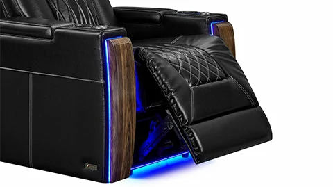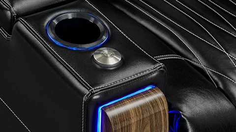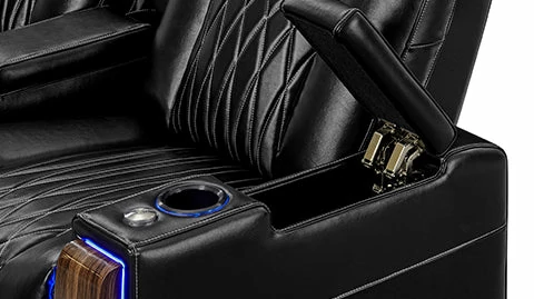 Cada Tuscany Executive incluye almacenamiento oculto en los reposabrazos para guardar controles y tabletas al alcance.